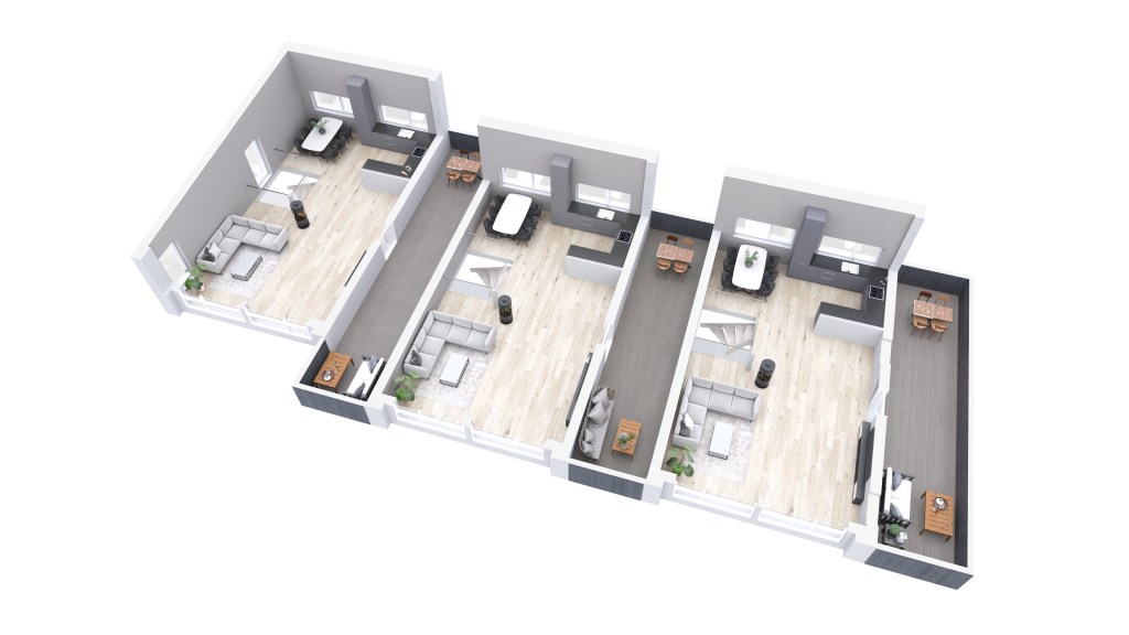 Et flott prosjekt med 3 eneboliger, der alle får flott utsikt og egne parkeringskjellere!