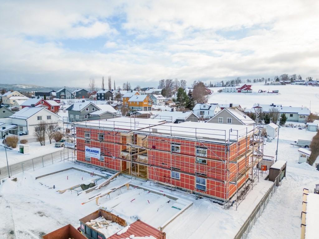 Her bygges det 4 flotte leiligheter, sentralt i Levanger. Alle leilighetene får privat carport med bod.